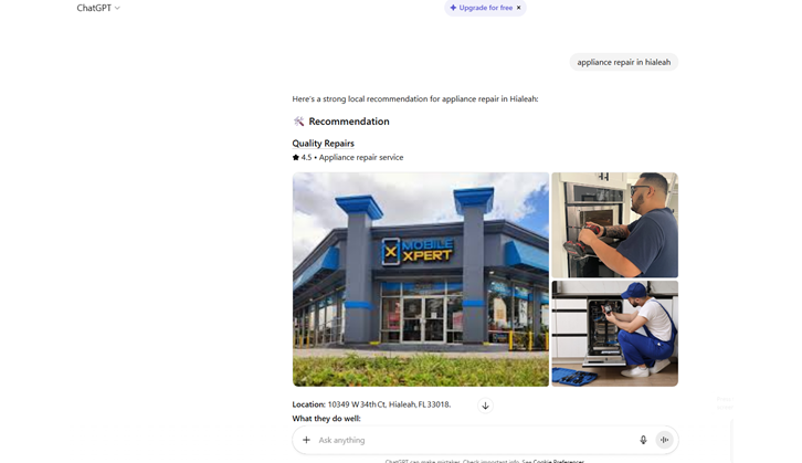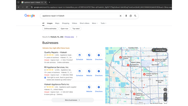 What you see above is the result of the magic created by Zammy Zaif and our Versa Forge team through a powerful local SEO service for Quality Repairs, a trusted appliance repair company in Hialeah in most answer engine results.